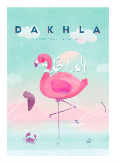 Une impression de paradis, c’est le sentiment qui ressort d’un séjour à Dakhla et de cette affiche signée  Lamia Hamaiddout ( Lamia Studio) // An impression of paradise is the feeling that comes out of a stay in Dakhla and this poster signed Lamia Hamaiddout ( Lamia Studio).