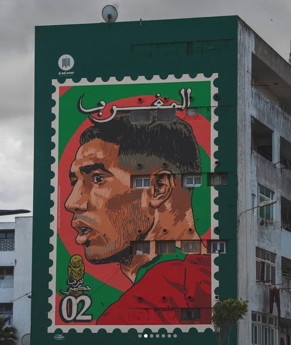Reproduction de la murale d’Ed Oner réalisée pour la coupe du Monde 2023 dans le quartier « El Hank » à Casablanca.