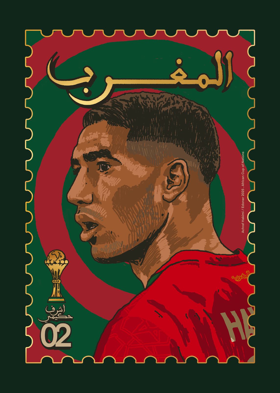 Cette affiche mets à l’honneur Achraf Hakimi, joueur emblématique du renouveau du football Marocain et ballon d’or Africain 2025.